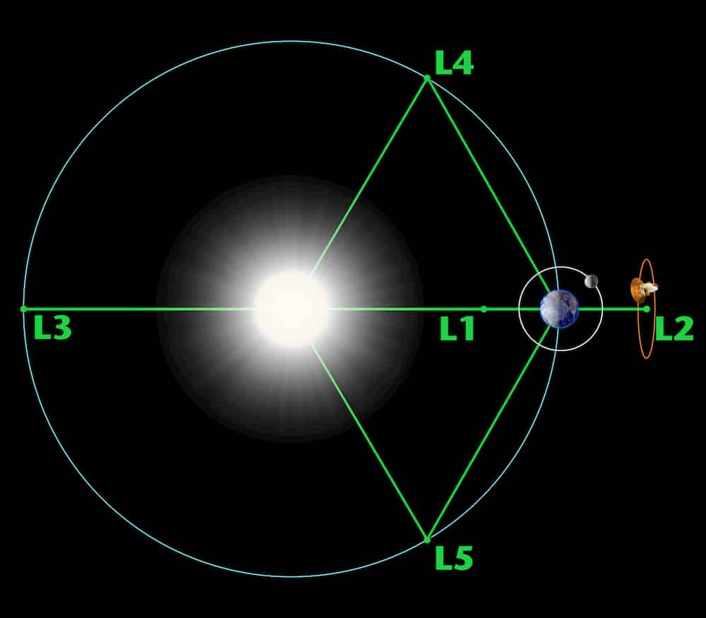نقاط لاگرانژ موقعیتی در فضا هستند که برآیند نیروهای جاذبه دو جسم بزرگ ، مانند زمین و خورشید یا زمین و ماه ، برابر با نیروی گریز از مرکز که توسط جسم سومی احساس می شود. برآیند این نیروها را نقاط لاگرانژی گویند ، یک نقطه تعادل که فضاپیماها می توانند در آن پارک کرده و به مشاهده فضا بپردازد.